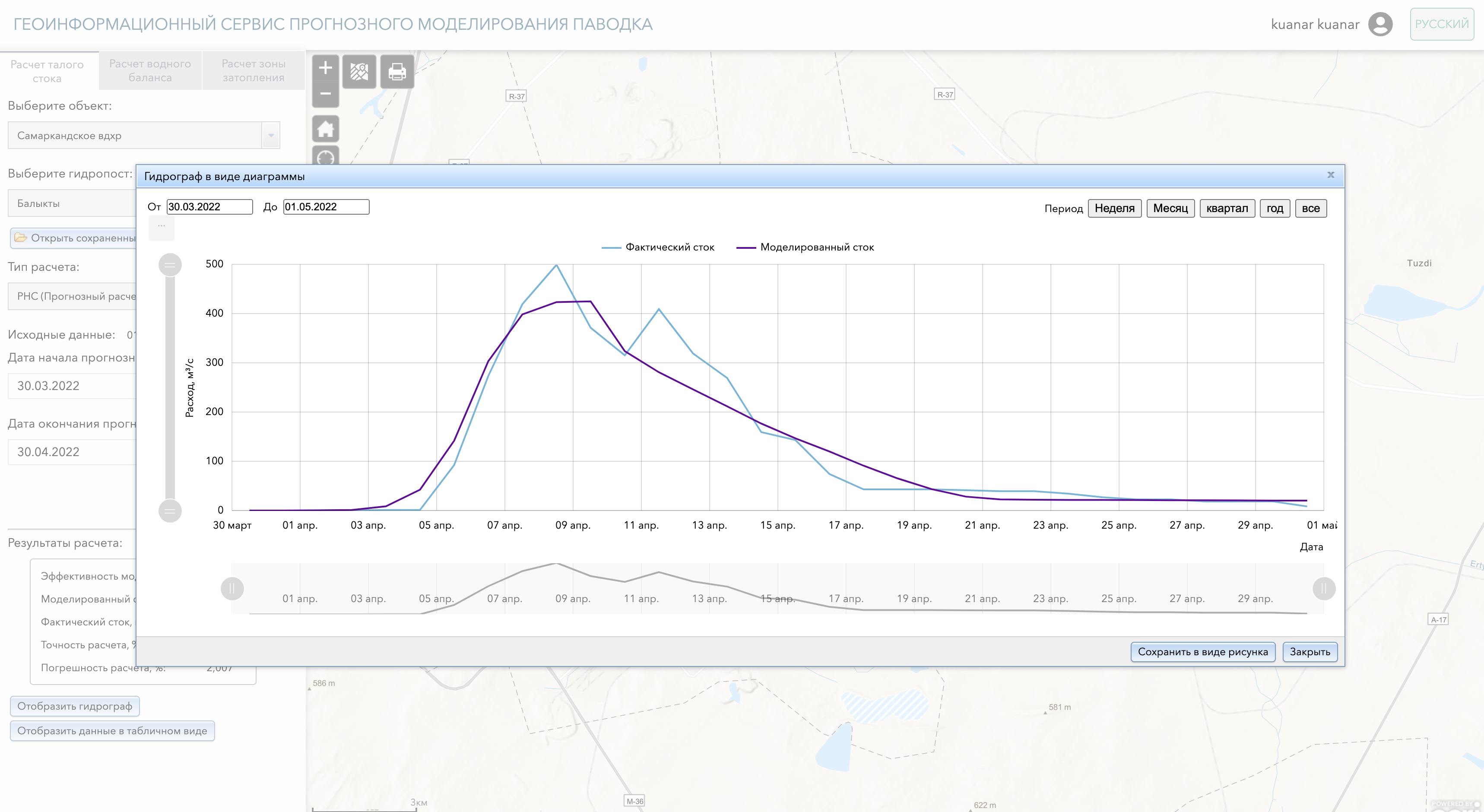 Forecasting and Modeling: The system performs calculations based on a large amount of data, including meteorological data, terrain, gauging data and historical data for more than 20 years. This allows you to accurately predict the volume of water that will flow on the selected date.
